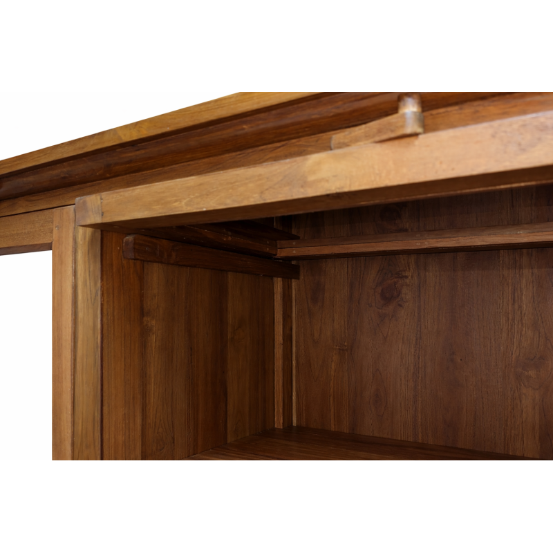 La Dispensa Coloniale Balinese è un mobile artigianale realizzato interamente in massello di tek, essenza pregiata nota per la sua resistenza all’umidità e alla durata nel tempo.