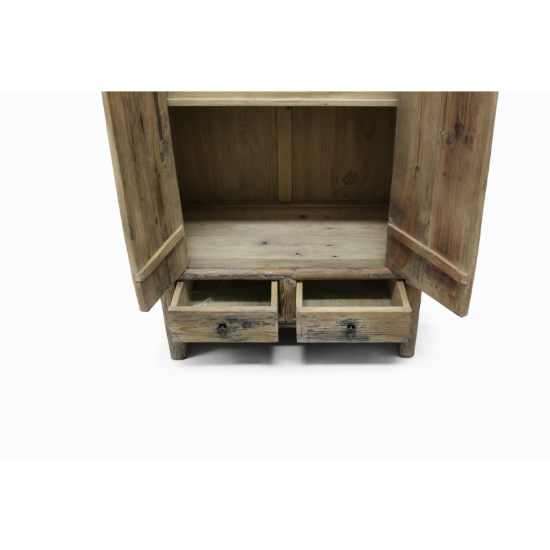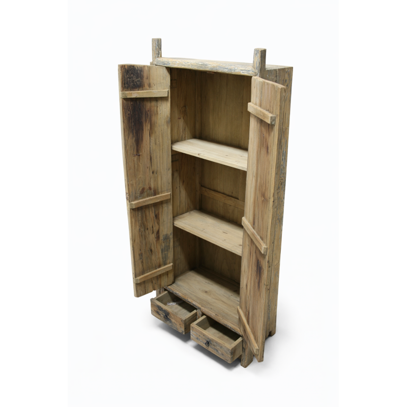 Dimensioni L 80 x P 40 x H 185 cm, dotata di 2 mensole interne removibili e 2 cassetti inferiori in olmo massello.