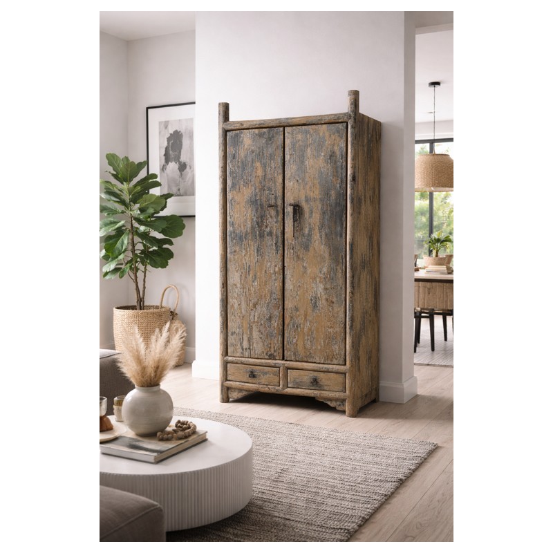 Dispensa Antica Shanghai è un autentico mobile cinese di metà Ottocento realizzato in legno massello di olmo, testimonianza dell’artigianato tradizionale orientale. Le proporzioni slanciate (L 80 x P 40 x H 185 cm) lo rendono elegante e versatile, ideale sia come dispensa che come armadio decorativo in ambienti contemporanei.