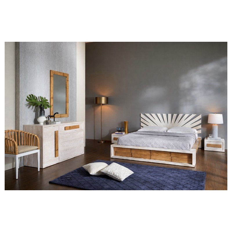 Il comodino Light è un complemento d’arredo dal design essenziale ed elegante, realizzato in crash bambù con finitura decapata bianca che valorizza le venature naturali del materiale. Prodotto artigianalmente nell’isola di Giava, esprime qualità costruttiva e cura dei dettagli tipiche della tradizione manifatturiera locale.