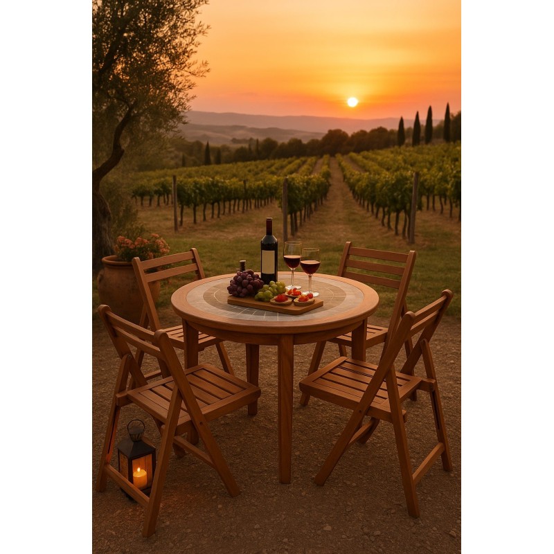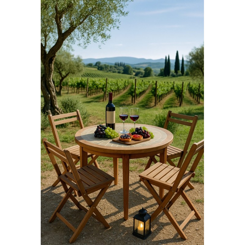 Il design senza tempo si integra perfettamente in contesti naturali e mediterranei, offrendo comfort, solidità e stile. Ideale per pranzi all’aperto, aperitivi al tramonto o momenti di relax in compagnia.