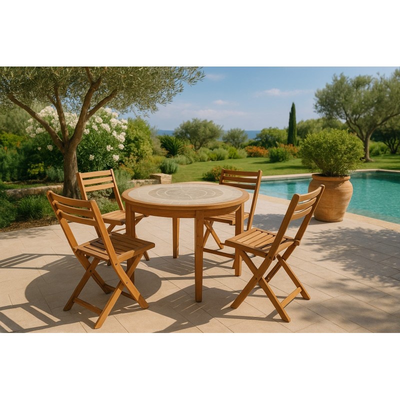 Tavolo rotondo da esterno in legno di tek modello Sidney