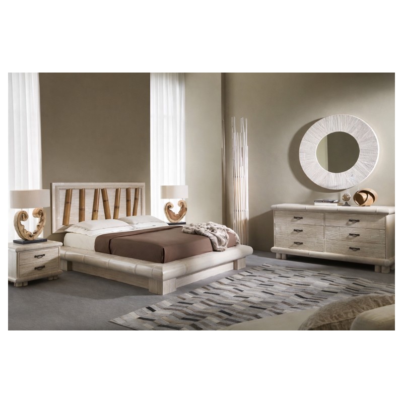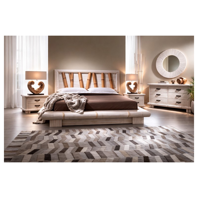 giroletto Virunga contenitore in crash bambù bianco decapato con testiera Forest