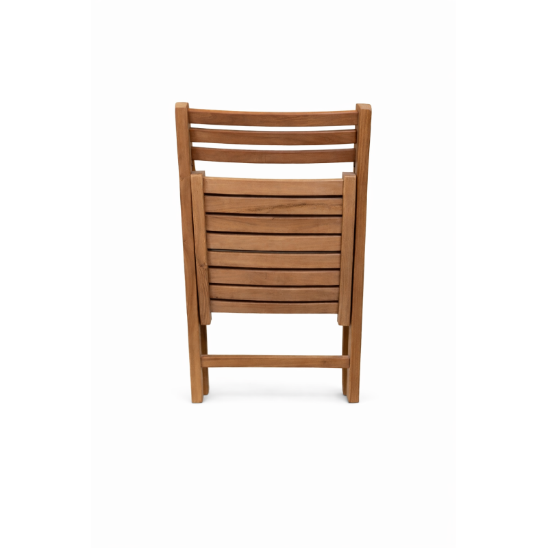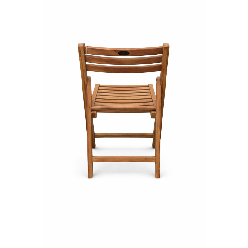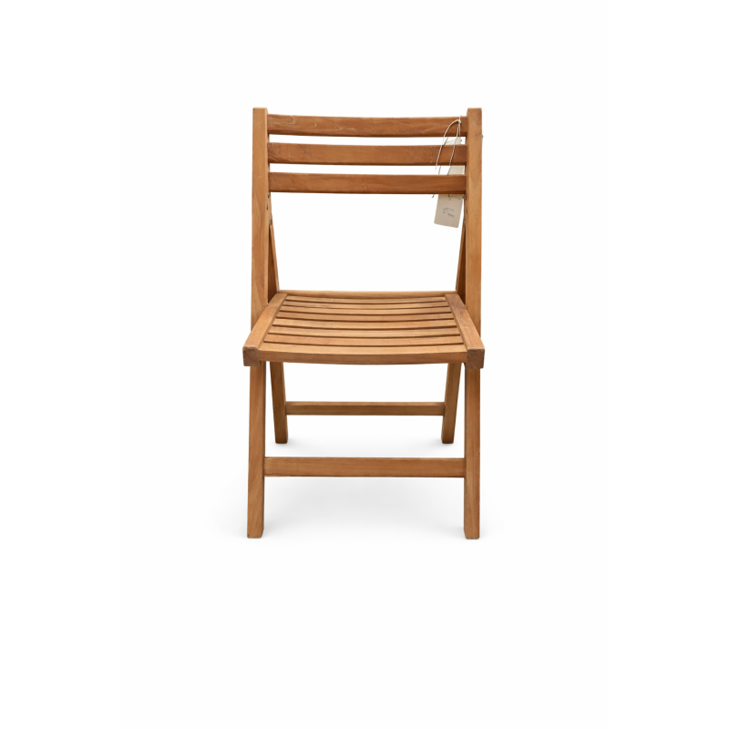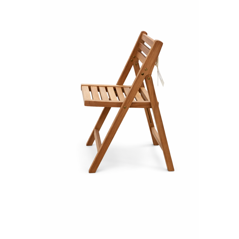 Sedia pieghevole in legno di teak massello modello Fido, pratica ed elegante. Struttura solida, seduta e schienale a listelli, ideale per ambienti interni ed esterni grazie alla naturale resistenza del teak.