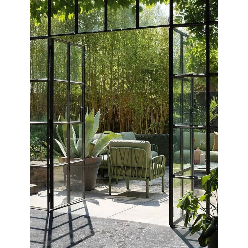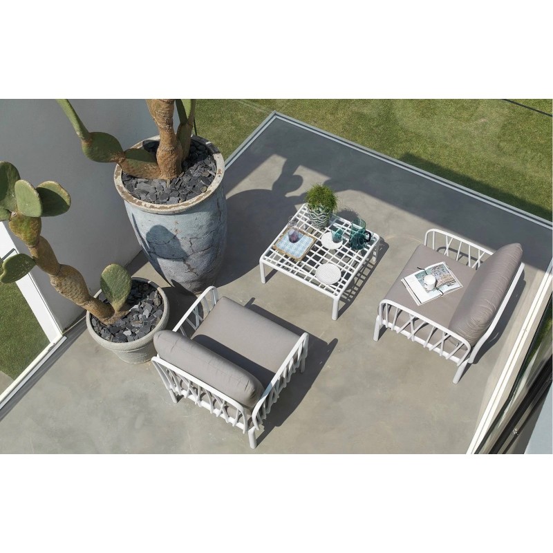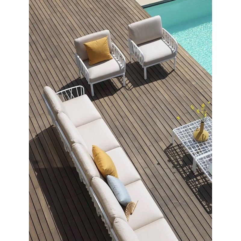 Komodo poltrona è una seduta da esterno firmata Nardi Outdoor, progettata per unire estetica contemporanea, funzionalità e comfort, adattandosi con facilità a diverse configurazioni modulari.