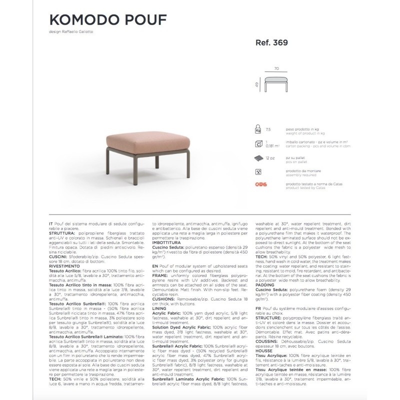 Grazie alla sua versatilità, Komodo pouf può essere utilizzato come elemento indipendente oppure integrato nelle composizioni modulari, contribuendo a creare spazi outdoor accoglienti e personalizzati.