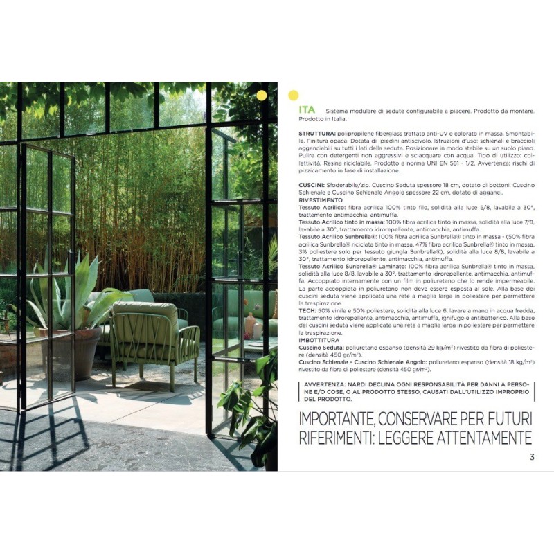 La struttura è realizzata in resina fiberglass, un materiale resistente e adatto all’utilizzo outdoor, progettato per mantenere stabilità e durata nel tempo. È disponibile nelle finiture bianco, antracite, tortora e agave, tonalità che si integrano facilmente con gli altri elementi della collezione.
