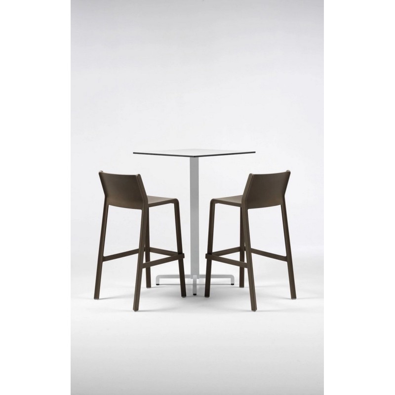 Sgabello ad altezza ridotta (counter height) per banconi snack o isole cucina esterne. Dimensioni: 47x52,5 cm Altezza: 85 cm (seduta 65 cm) Peso: 4,6 kg Pz. 4 Impilabile fino: pz. 4
