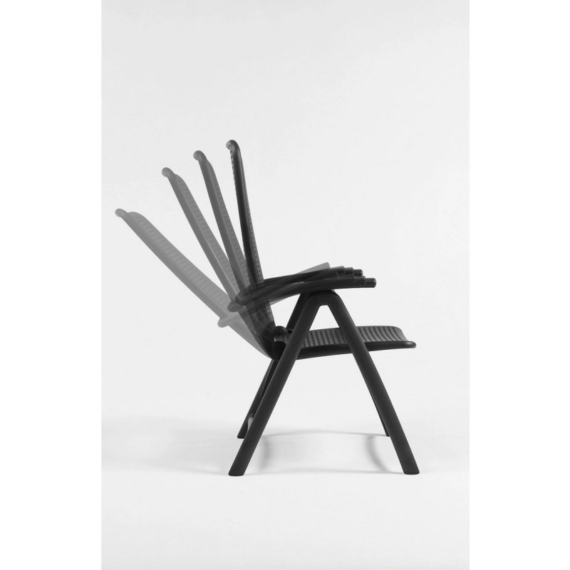 La poltrona è dotata di braccioli integrati nella struttura, progettati per offrire un supporto naturale alle braccia e aumentare la sensazione di comfort durante l’utilizzo prolungato. Il sistema pieghevole consente di richiudere facilmente la poltrona quando non è in uso, facilitando lo spostamento e lo stoccaggio. Una volta chiusa occupa uno spazio ridotto, caratteristica che la rende particolarmente pratica per chi necessita di ottimizzare gli spazi in ambienti esterni o in contesti professionali.