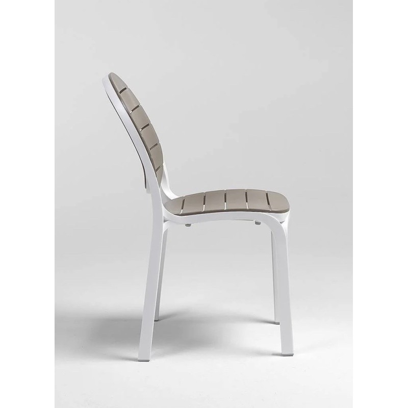 La struttura è realizzata interamente in polipropilene trattato con additivi anti-UV e colorato in massa. Questa tecnologia garantisce una lunga durata nel tempo, mantenendo il colore uniforme anche dopo un’esposizione prolungata al sole e agli agenti atmosferici. La superficie presenta una finitura opaca che conferisce alla sedia un aspetto moderno e piacevole al tatto.