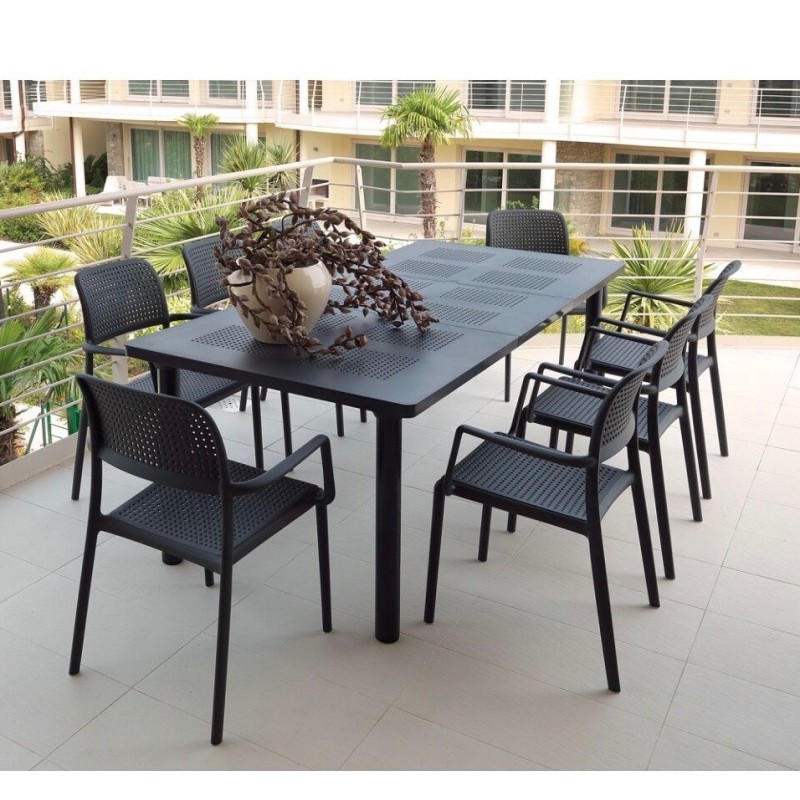composizione con tavolo allungato Libeccio e sedie Bora colore antracite