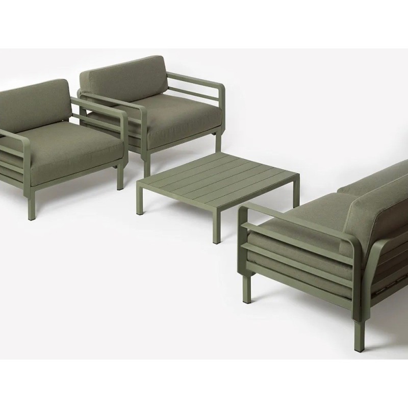 Le dimensioni, L 85 x P 92 x H 79 cm, con altezza seduta di 45,5 cm e bracciolo a 62 cm, garantiscono una seduta ampia e confortevole. I cuscini, morbidi e accoglienti, sono sfoderabili e realizzati con imbottitura in schiuma poliuretanica, rivestiti in tessuto Sunbrella, altamente resistente ai raggi UV, all’acqua e alle macchie.