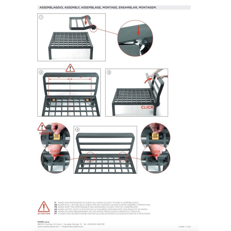 Durante l’installazione è necessario prestare attenzione a possibili rischi di pizzicamento. Nardi declina ogni responsabilità per eventuali danni a persone, cose o al prodotto stesso derivanti da un utilizzo non corretto.